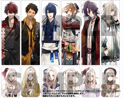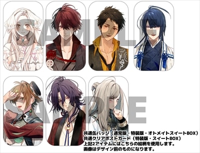 びっく宝島特典付・缶バッジ(44×70mm)7個セット・クリアポストカード7枚セット・選べるB3ハーフサイズタペストリー(全6種)+オランピア缶バッジ(44×70mm)(全6種)